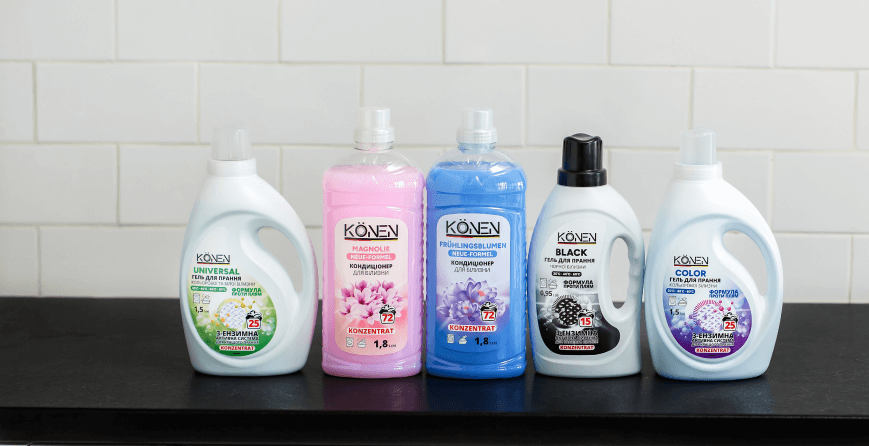 Якщо ви шукаєте безпечний, якісний та доступний засіб для прання одягу та білизни, бренд KÖNEN представляє різноманітний асортимент продукції спеціально для вас! Кожен засіб розроблений європейськими фахівцями та відповідає міжнародним стандартам якості та безпеки.